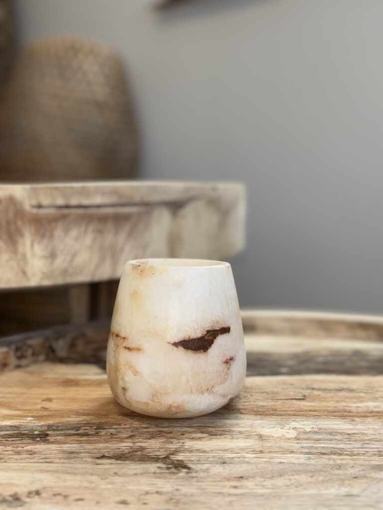 Alabast lysestage cylinder – Marmoreret H6 cm