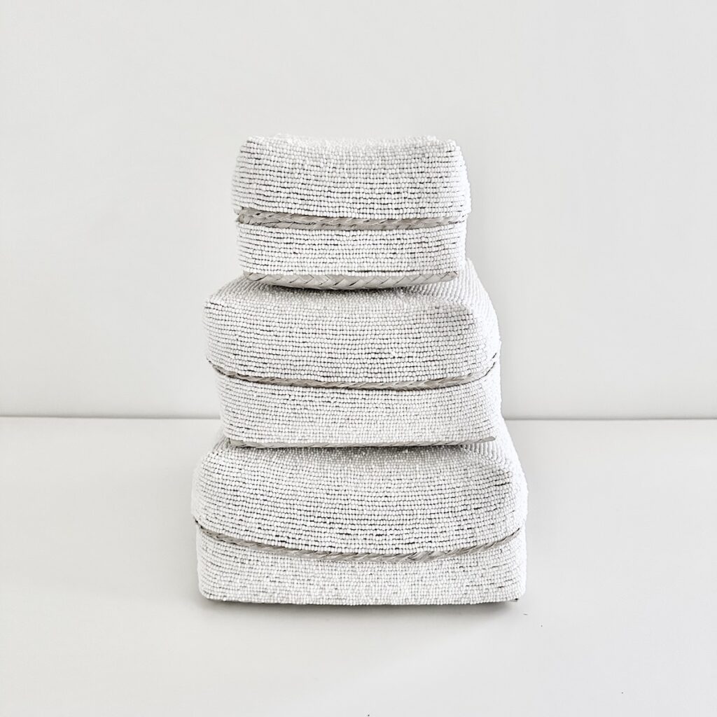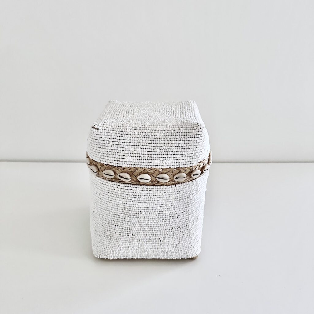 Høj Bali perle æske med shells – hvid – Lille H21 cm