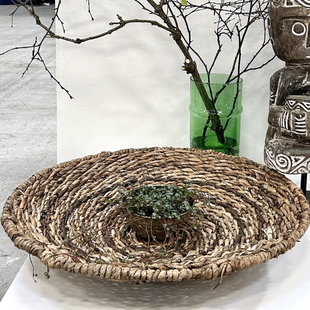 Det smukke Bali Abaca fad er håndflettet i kraftige bananblade fra Moder Natur i Indonesien. Fadet er utroligt dekorativt som deko ophæng på væggen – alene eller i et samspil med andre fade og ting. Du kan også bruge det som et stort fad på gulvet med blade og aviser, fjernstyrer, brænde, tæpper, håndklæder, garnnøgler mm. Eller sæt det på spisebordet til frugt og grønt – eller blot som pynt og ‘fyld’ på bordet, hvis I kun spiser 2 personer:).