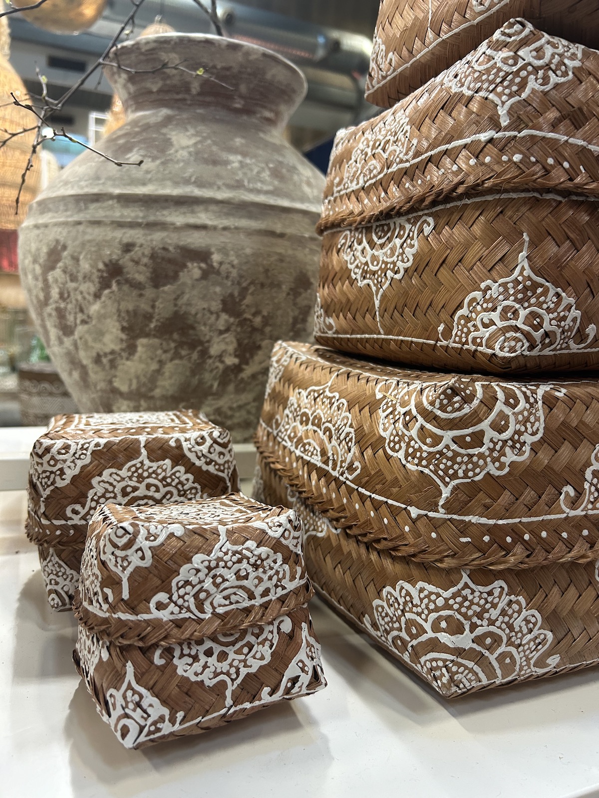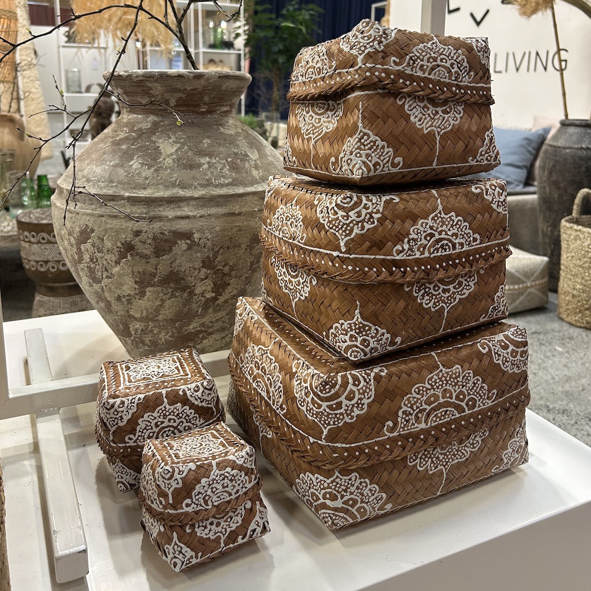 OPRINDELSE: Bali. Æsken er håndflettet af lokale kvinder. Selve æsken anvendes oprindeligt til opbevaring af ris og andre madvarer men også til opbevaring af forskellige ting fra dagligdagen.