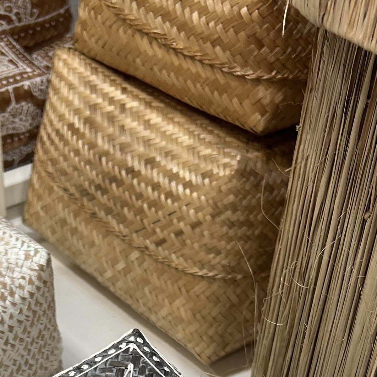 OPRINDELSE: Bali. Æsken er håndflettet af lokale kvinder. Selve æsken anvendes oprindeligt til opbevaring af ris og andre madvarer men også til opbevaring af forskellige ting fra dagligdagen.