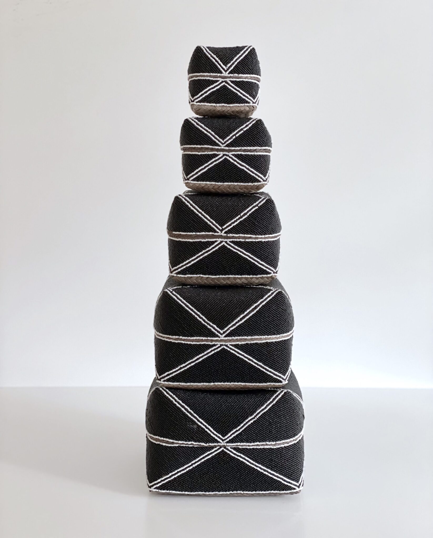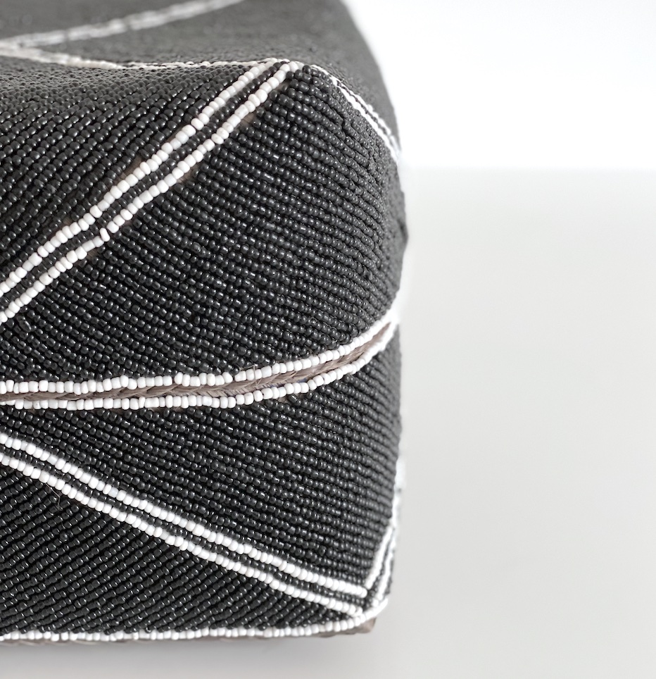 OPRINDELSE: Æsken er håndflettet på Bali og hver perle er påsyet i hånden. Selve æsken anvendes oprindeligt til opbevaring af ris og andre madvarer mens den med perler påsyet anvendes til opbevaring af forskellige ting fra dagligdagen.