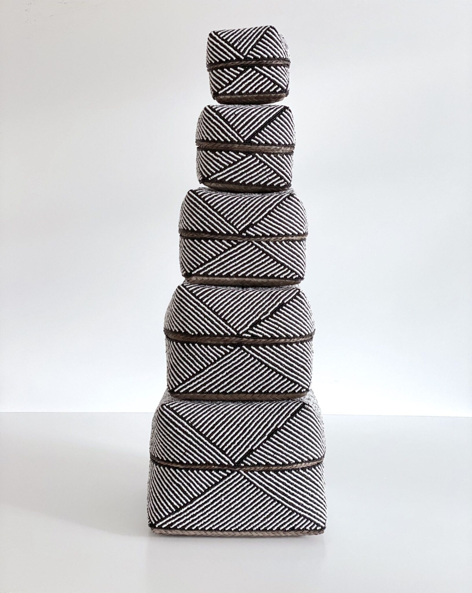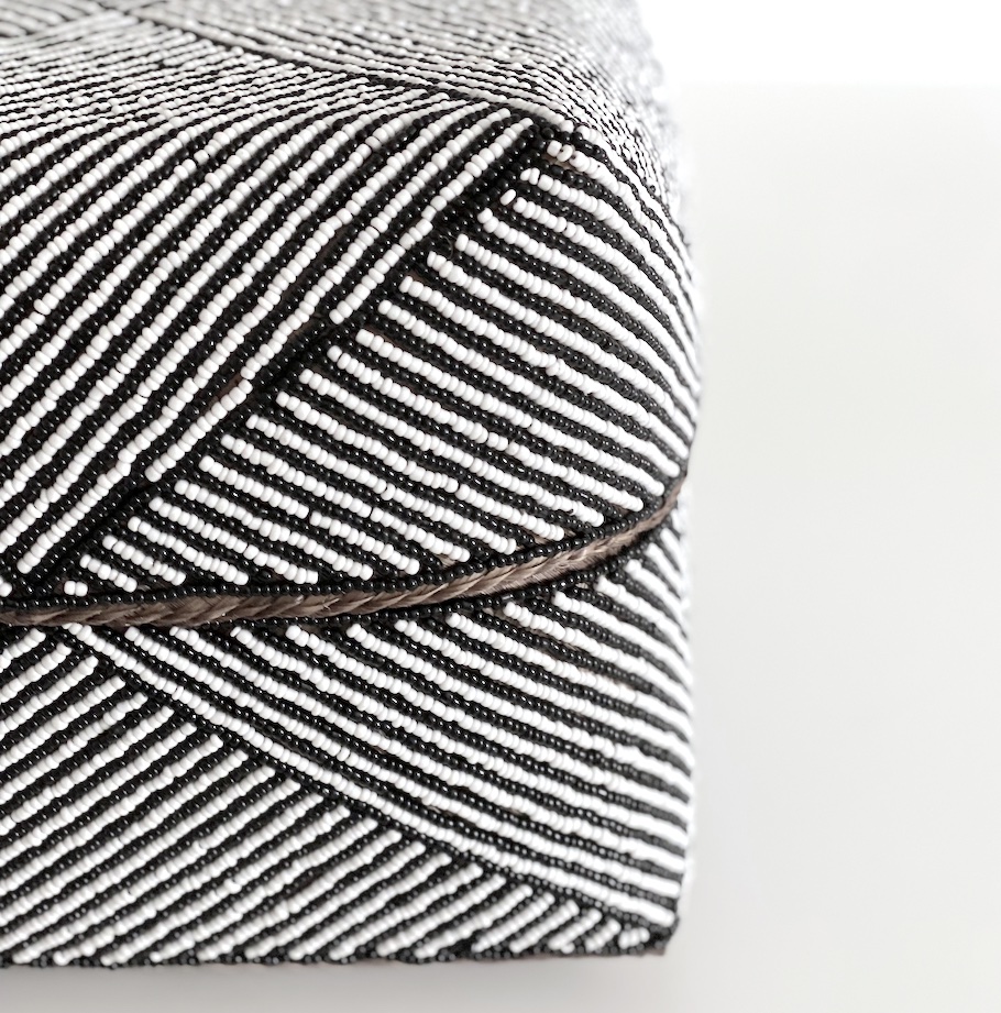 OPRINDELSE: Æsken er håndflettet på Bali og hver perle er påsyet i hånden. Selve æsken anvendes oprindeligt til opbevaring af ris og andre madvarer mens den med perler påsyet anvendes til opbevaring af forskellige ting fra dagligdagen.