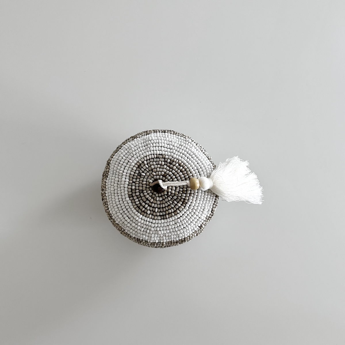 Varenummer 36673 - Bali perleæske rund mini - beige/hvid Kategorier , , , , , , , , , , ,