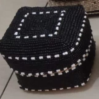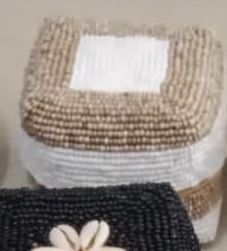 Bali perleæske square mini – beige/sort kant STØRRELSE: @B8 x D8 xH8 cm. Da kurven er håndflettet kan målene variere