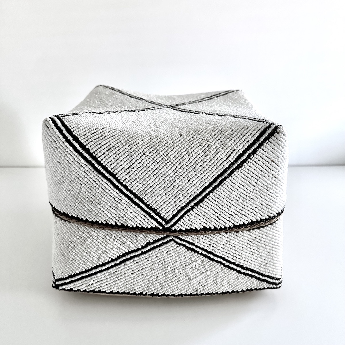 OPRINDELSE: Æsken er håndflettet på Bali og hver perle er påsyet i hånden. Selve æsken anvendes oprindeligt til opbevaring af ris og andre madvarer mens den med perler påsyet anvendes til opbevaring af forskellige ting fra dagligdagen.