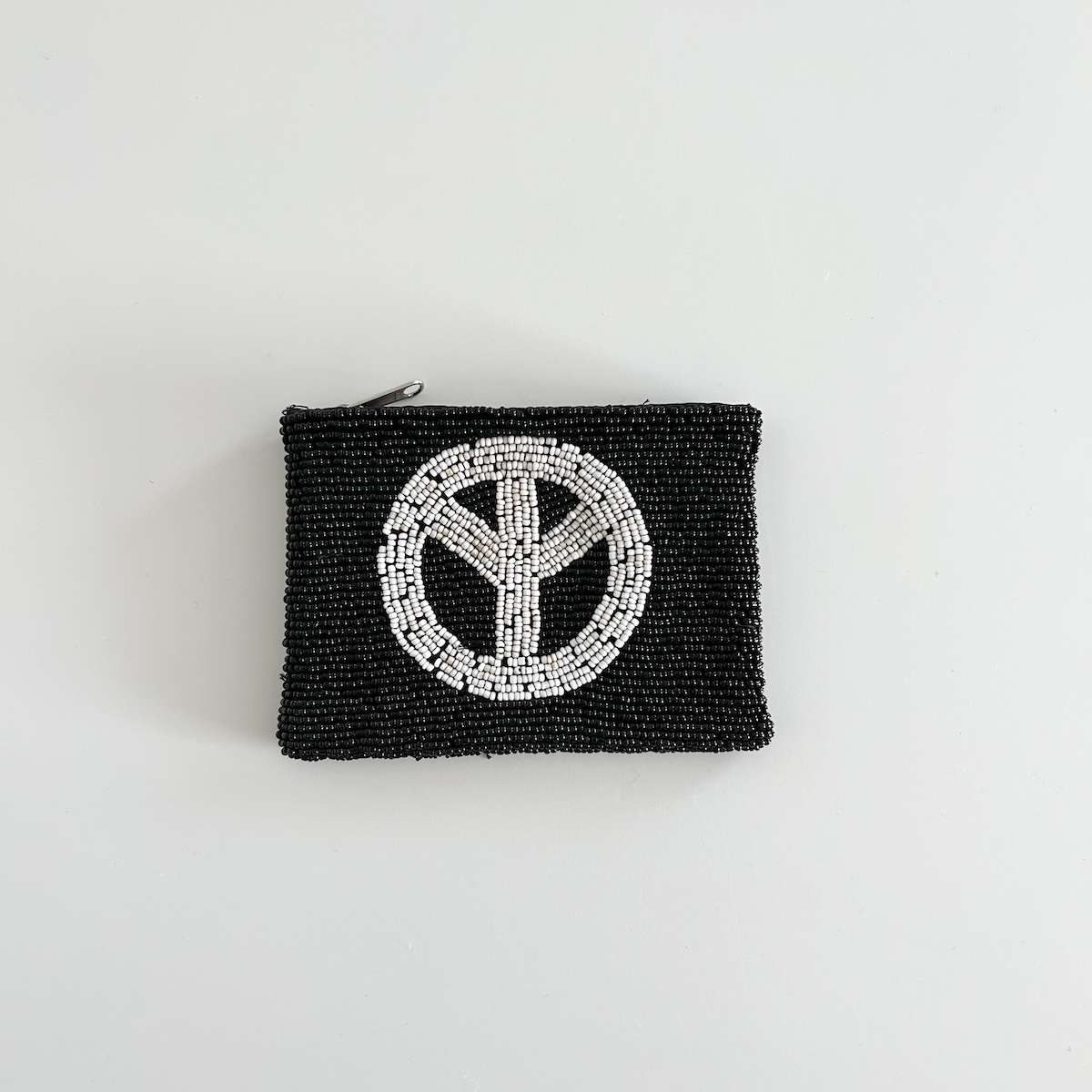 Bali perlepung med lynlås – Peace STØRRELSE: L14 x 10 cm Bemærk: Da pungene er håndflettede kan målene variere: