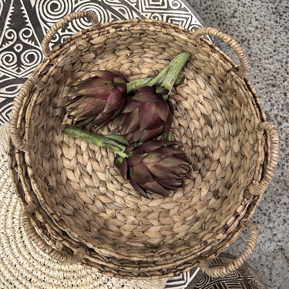 De rustikke runde brød kurve er håndflettet på Bali i kraftige blade fra naturens rigdom af vandhyacinter. Du får her et sæt med 3 forskellige størrelser, der er smukke og praktiske som bakker i køkkenet og på terrassen.