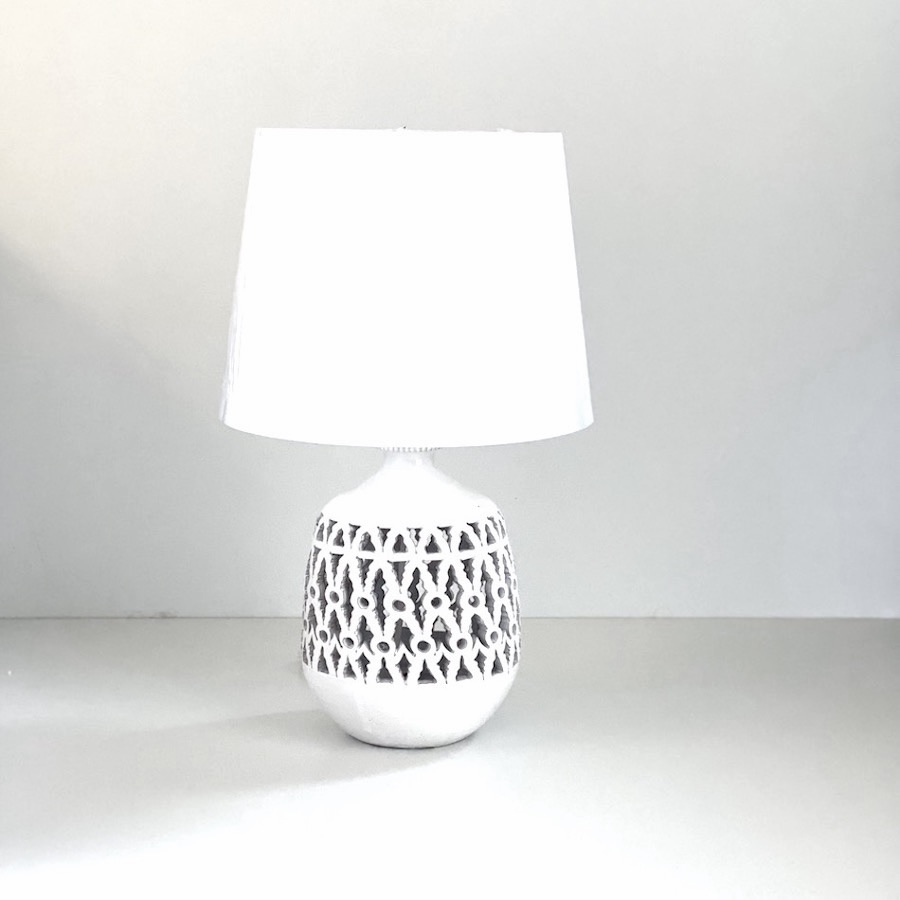 SKØN unika bordlampe håndlavet i andalusisk keramik. Lampefoden er håndlavet efter gamle, stolte traditioner, farver og mønstre af en spansk keramiker, der som 5. generation har en lille workshop i det sydlige Spanien. Hvert eneste mønster er manuelt udskåret og formet. Og som en ekstra, charmerende detalje har den lokale keramiker skrevet sin signatur på lampefoden.