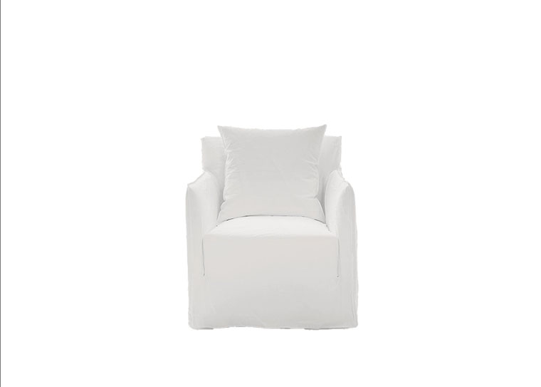 Denne elegante lænestol fra Gervasoni Ghost serien er designet af italienske Paola Navone. Den er opbygget med en trækonstruktion, med flere lag af polyuretan skum, hvilket gør den dejlig blød at sidde i.