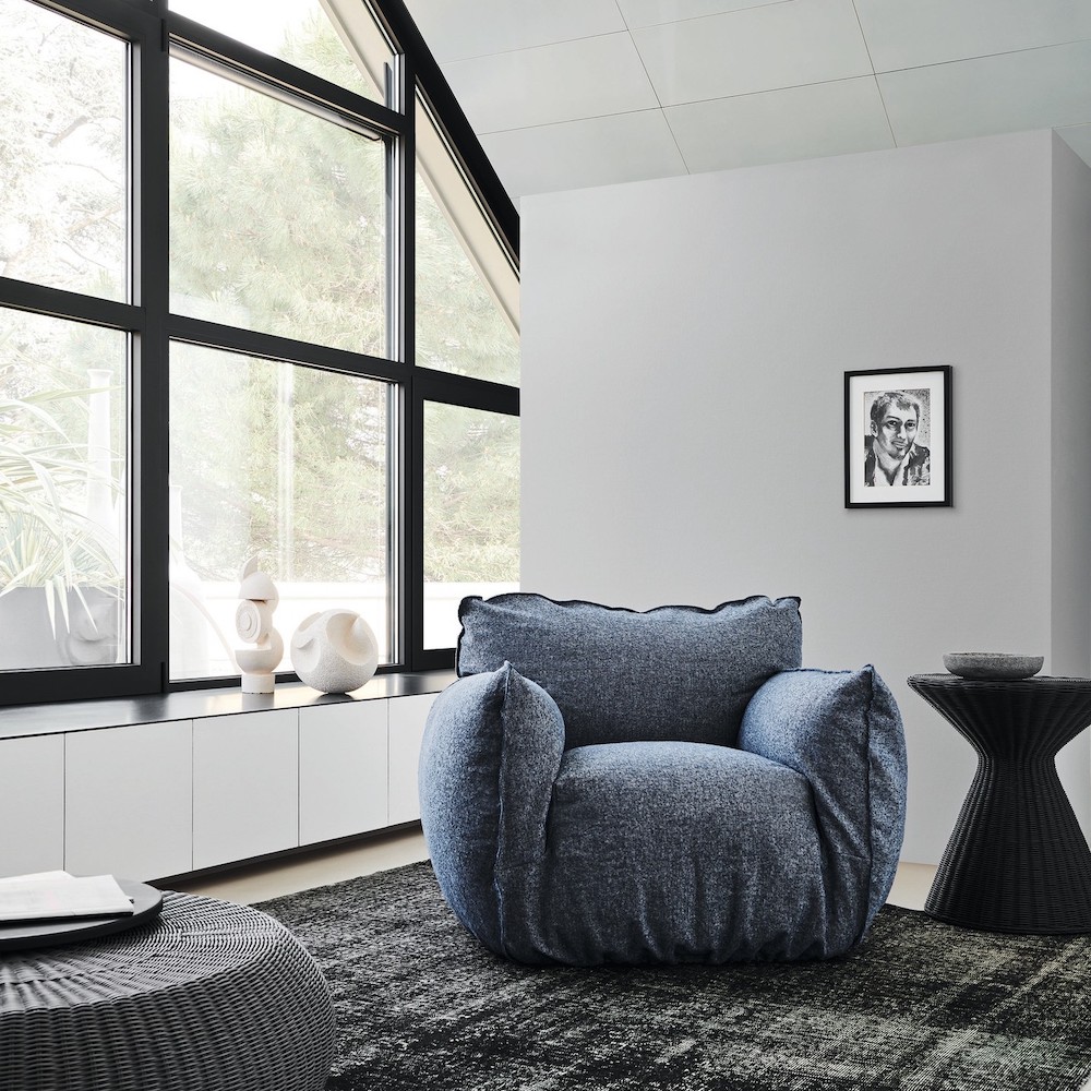 Den lækre Nuvola 05 Lænestol fra Gervasoni 1882 er designet af italienske Paola Navone. Lounge stolen er lavet i et kraftigt og blødt materiale med en ‘bamset’ silhouet der ‘krammer’ sig rundt om dig. Stolen er lavet med aftageligt betræk i flere tekstiler, som gør det let at tilpasse stilen til dit hjem. Hvis du vælger et af de helt kraftige, uldne stoffer eller 3D stoffet bliver ‘bamseeffekten’ endnu større.