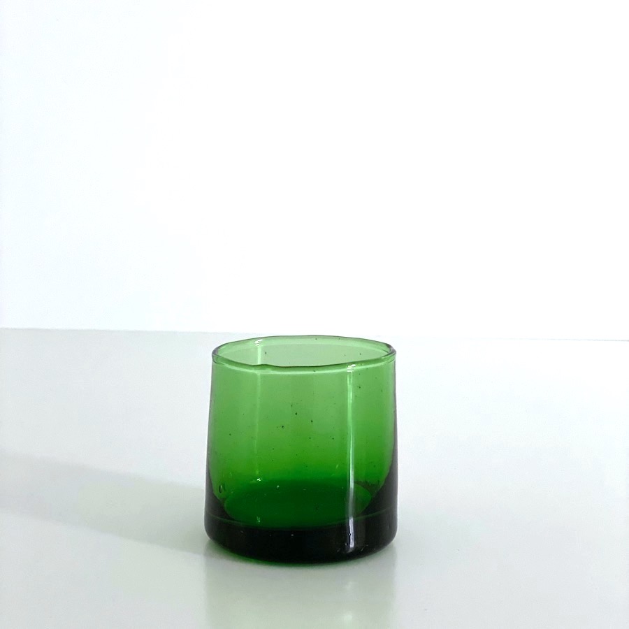 Hvert glas er unikt, da det er håndlavet og mundblæst i genbrugs glas. Bobler, ujævnheder og forskelle i tykkelser, størrelser og farvenuancer forekommer og anses for at være en del af glassets historie og charme. Med dette glas støtter du op om de stolte håndværkstraditioner i Marokko og bidrager til at bevare arbejdspladser og indtjening for familierne i lokalsamfundet.
