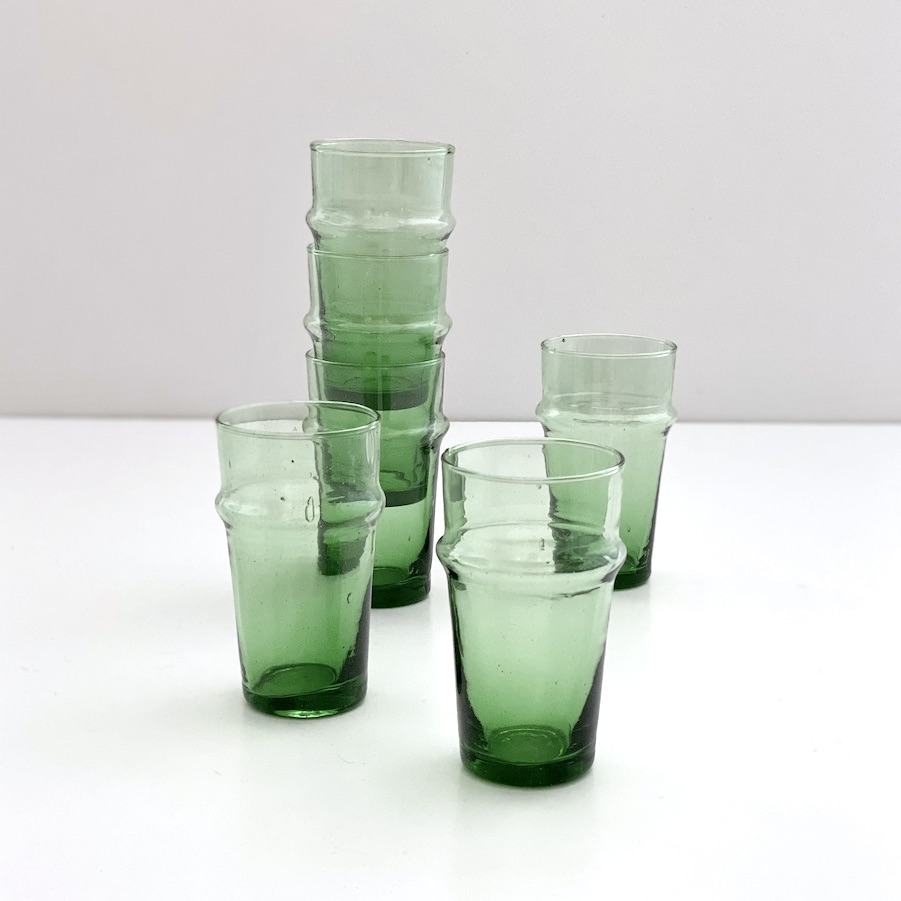 Hvert glas er unikt, da det er håndlavet og mundblæst i genbrugs glas. Bobler, ujævnheder og forskelle i tykkelser, størrelser og farvenuancer forekommer og anses for at være en del af glassets historie og charme. Med dette glas støtter du op om de stolte håndværkstraditioner i Marokko og bidrager til at bevare arbejdspladser og indtjening for familierne i lokalsamfundet.