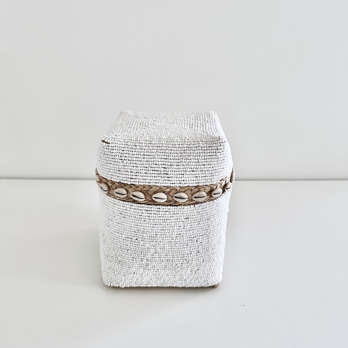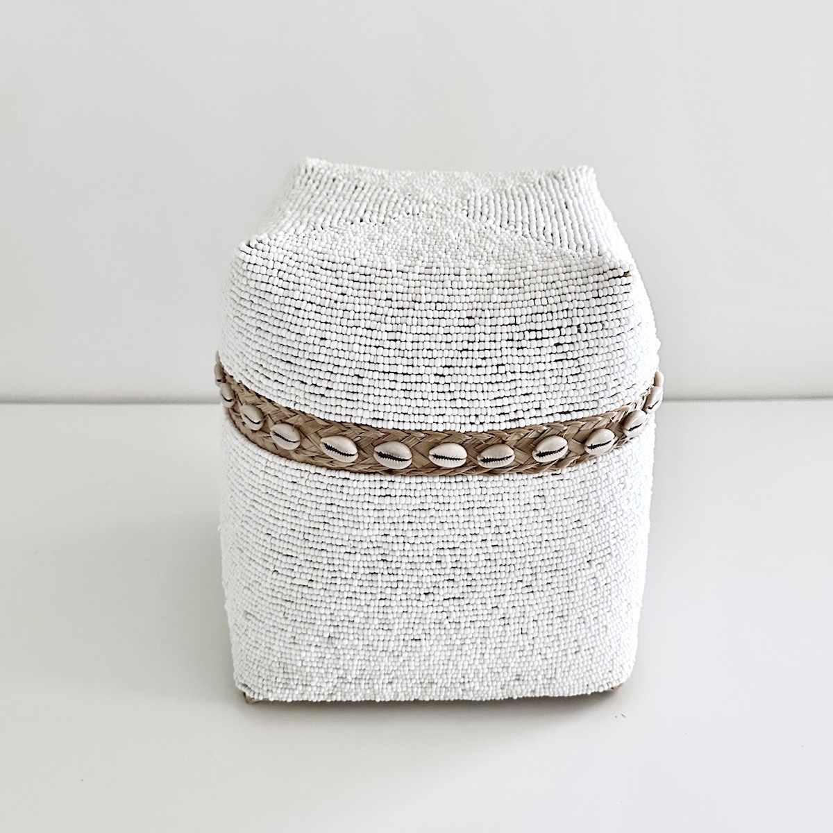 Høj Bali perle æske med shells – hvid – mellem H24 cm STØRRELSER: