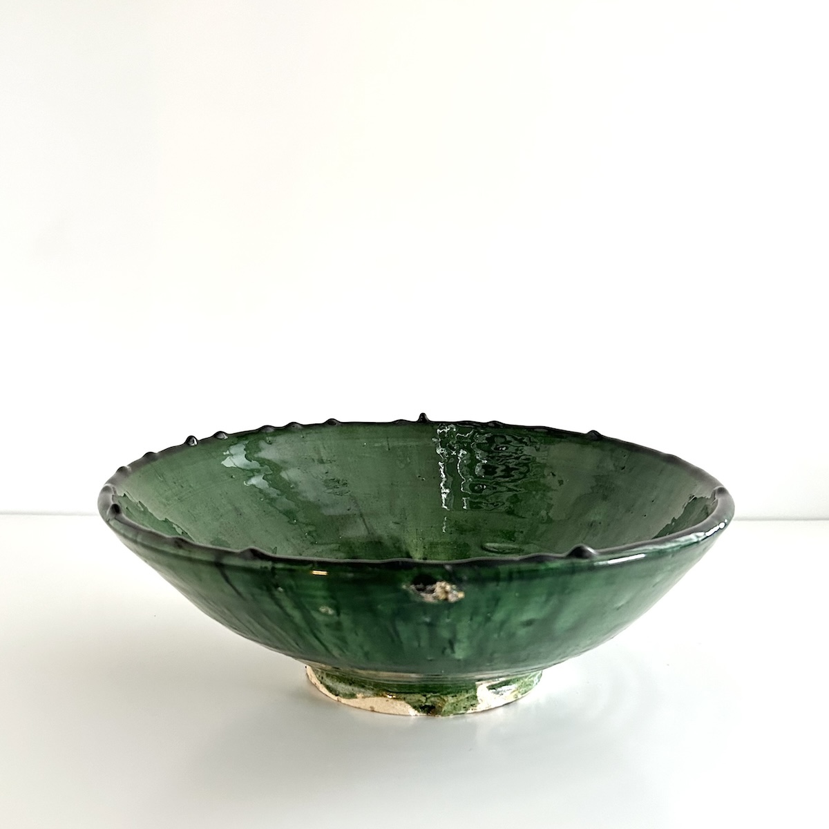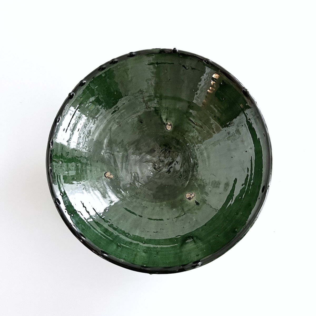 OPRINDELSE: Den unikke keramik er skabt af en lokal keramiker, der bor og arbejder i den lille by, Tamegroute ved Draa flod dalen i det sydlige Marokko. Vi har fundet den dygtige keramiker i samarbejde med en af vores marokkanske soul partnere. Tamegroute keramikken hører blandt de ældste håndværkstraditioner i Marokko. Det gamle craftsmanship skabes ud fra en unik proces hvor keramikken formes af ler fra moder natur der tørrer i store, udgravede gryder i jorden og efterfølgende brændes over åben ild i en af de 7 udendørs ovne, der deles af byens keramikere.