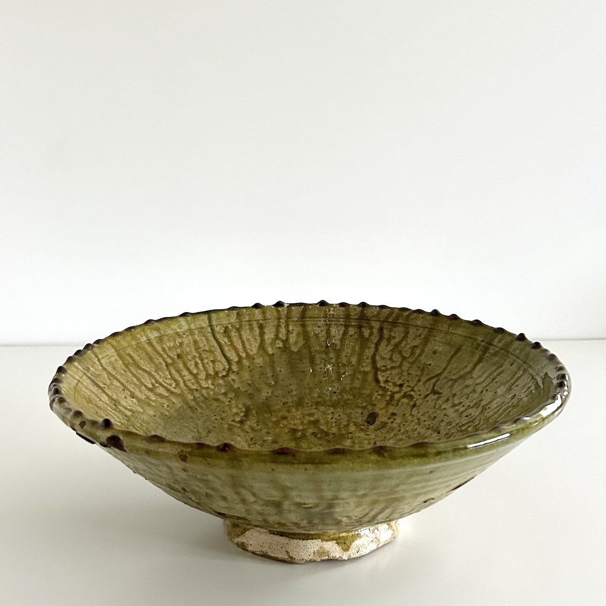 OPRINDELSE: Den unikke keramik er skabt af en lokal keramiker, der bor og arbejder i den lille by, Tamegroute ved Draa flod dalen i det sydlige Marokko. Vi har fundet den dygtige keramiker i samarbejde med en af vores marokkanske soul partnere. Tamegroute keramikken hører blandt de ældste håndværkstraditioner i Marokko. Det gamle craftsmanship skabes ud fra en unik proces hvor keramikken formes af ler fra moder natur der tørrer i store, udgravede gryder i jorden og efterfølgende brændes over åben ild i en af de 7 udendørs ovne, der deles af byens keramikere.
