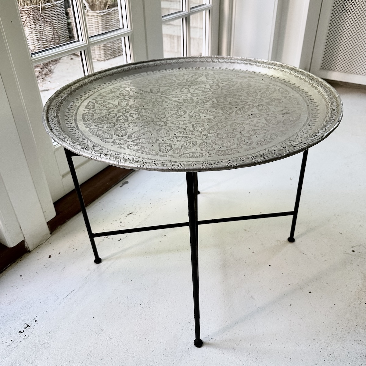 Marokkansk bakkebord m/aluminium fad Ø65 cm – vintage
