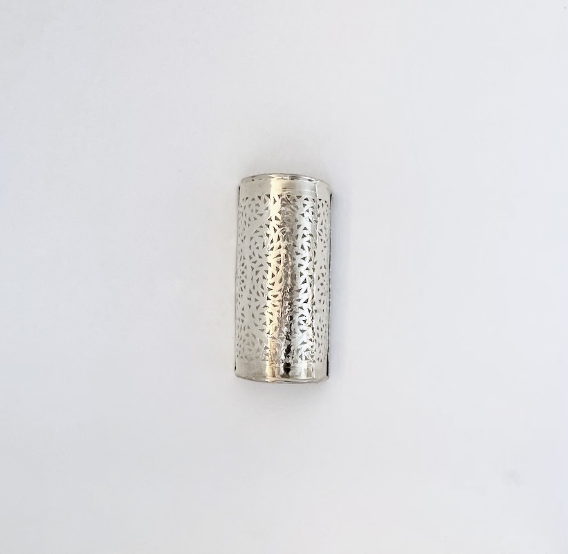 MATERIALE: Håndlavet i messing pålagt et tyndt lag sølv. BEMÆRK: De udskårne mønstre kan variere lidt