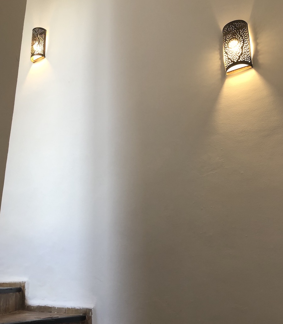 Den charmerende aflange væglampe er håndlavet i messing påført et lag ægte sølv. De smukke skærme er crafted af 2 brødre i en lille, Marrokansk shop. Skærmene anvendes typisk som lyskilde i de lokale huse og smukke Riads i Marokko.
