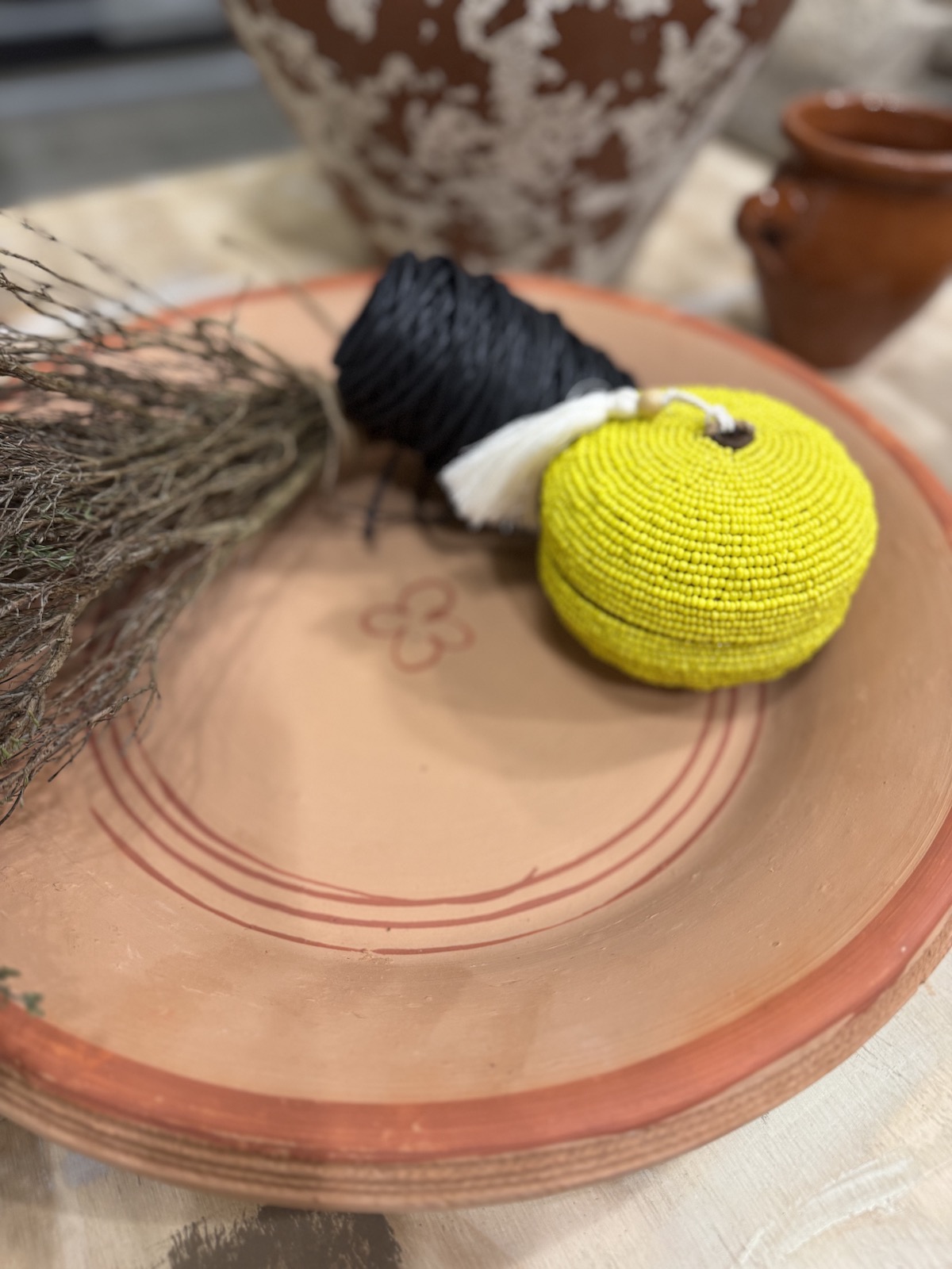 Det smukke keramik fad er håndlavet af lokale keramikere i den røde ler, der er så karakteristisk for Marrakesh – den ‘Røde by’ i Marokko. Fadet er er formet og brændt efter gamle, stolte traditioner i ler fra den omkringliggende natur. Fadet her bruges oprindeligt som fad til Couscous i det Marokkanske køkken men det er også meget smukt, enkelt og rustikt blot til pynt . Spred den autentiske energi i dine rum eller til en, du holder af.