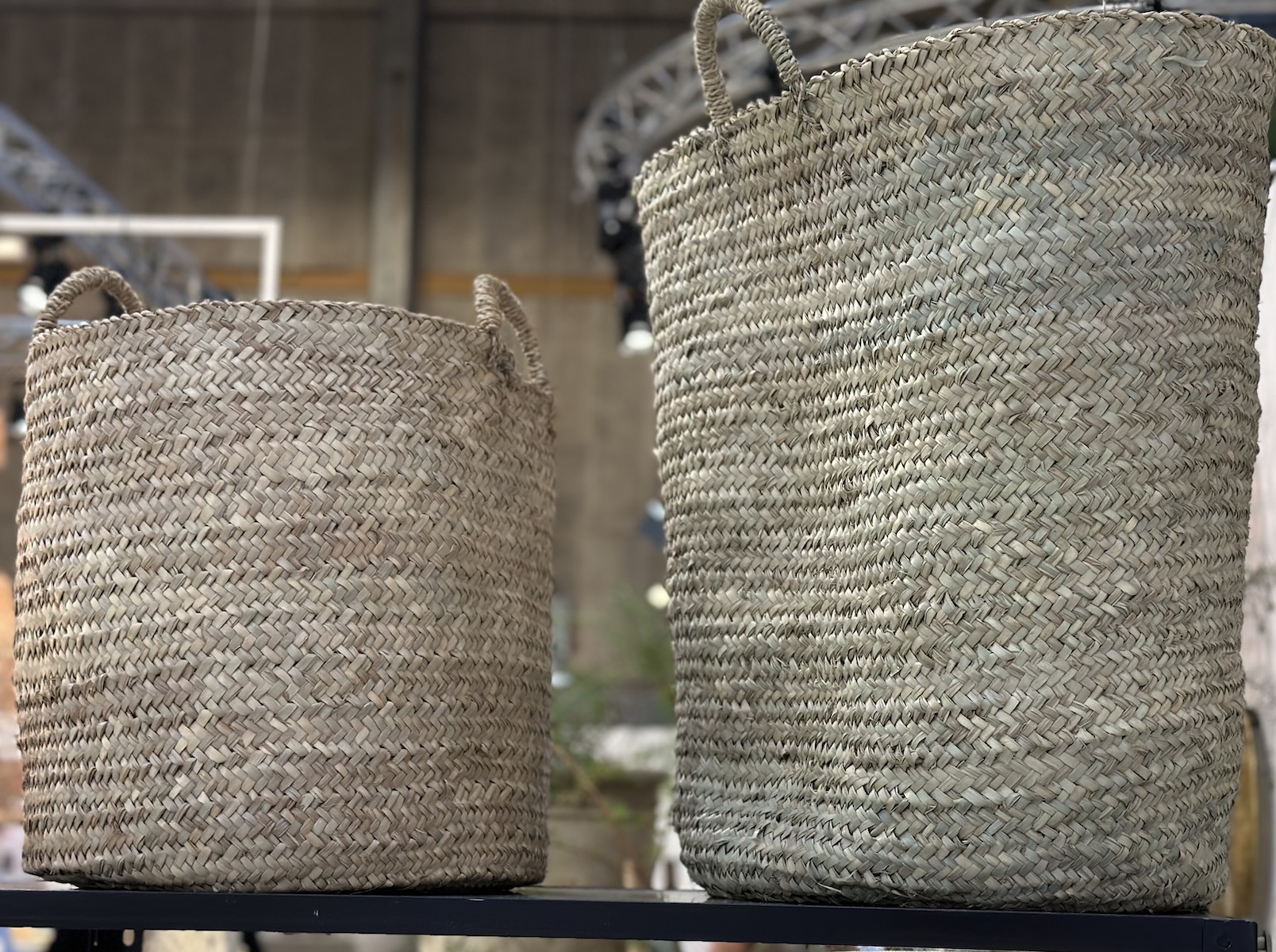 Lækker høj kurv håndflettet i Marokko af naturlige palmeblade. Kurven er en basiskurv, der bruges i den marokkanske dagligdag. Deraf navnet ‘Paniers’, der betyder kurv på fransk. Kurven bruges oprindeligt til vasketøj, men er også lækker til opbevaring af tæpper, legetøj, sko og vanter i entreen mm. De 2 hanke gør kurven praktisk at flytte rundt med. Fåes her i et sæt med 2 størrelser