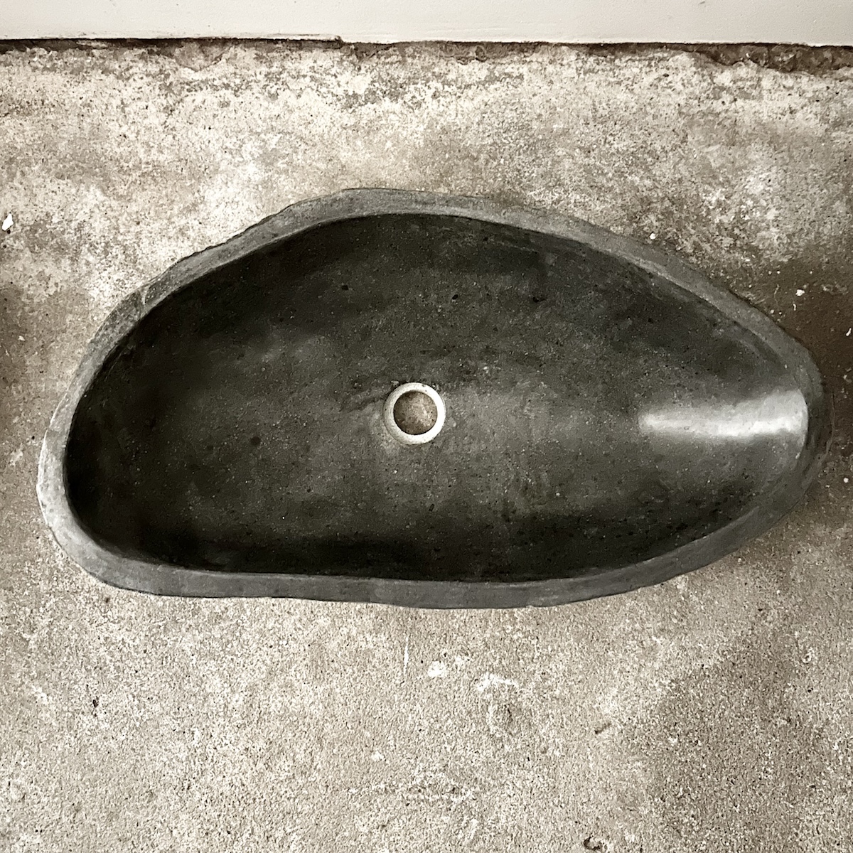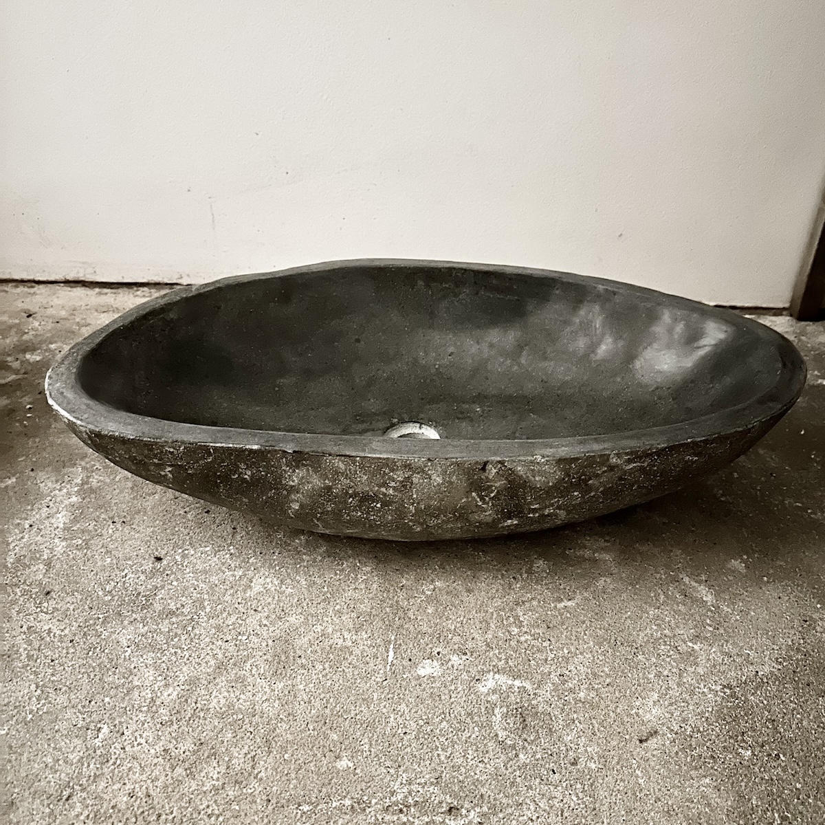 Den store håndvask fra Bali er manuelt udformet i et stykke flodsten fra Moder Natur. Hver vask er fuldstændig unik i sin størrelse, form, farver og aftegninger, der er præget af stenens liv i naturen. Sten til de helt store håndvaske som denne er særligt unikke, da de er svære at finde og arbejde med. Ujævnheder og aftegninger er en del af stenens natur og autentiske charme.