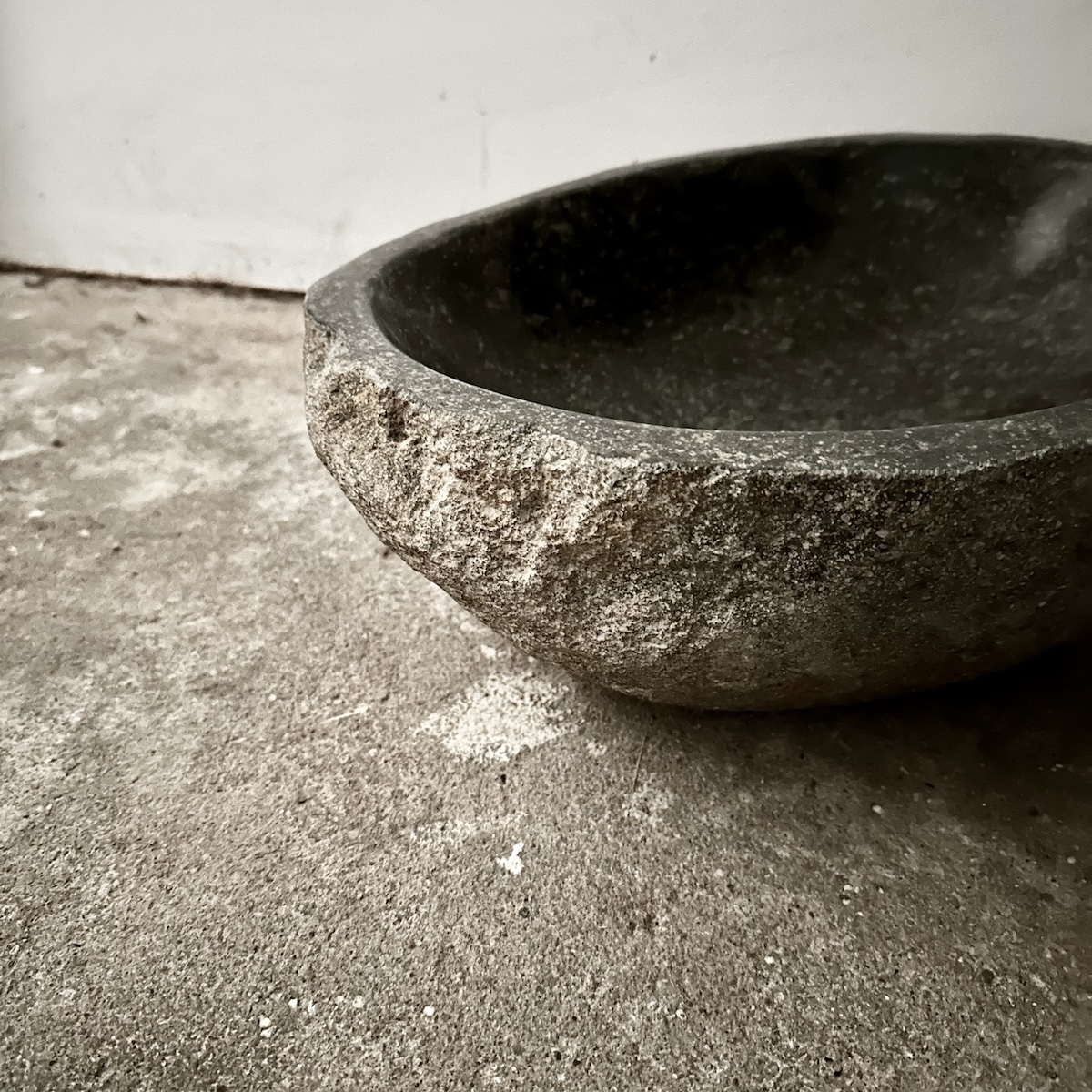 MATERIALE: Flodsten fra Bali – 100% naturprodukt. Indvendigt er vasken imprægneret med en tynd voksbelægning for beskyttelse mod kalk og snavs. FARVE: Grålig yderside – mørk inderside Stenen er skabt og præget af Moder Natur, hvilket giver Naturfarvet sten i grålige nuancer med en anelse brunlige og lyse aftegninger. Udvendig er stenen mat. Indvendigt har slibning samt pudsning med et tyndt lag voks givet vasken en mørk transit grå farve med en anelse blank finish. OPRINDELSE: Håndskåret på Bali, Indonesien. Stenen er et stykke af Moder Natur, som manuelt er blevet udhulet, slebet, pudset samt afslutningsvist imprægneret til den smukkeste håndvask med en glat, vandafvisende overflade på indersiden. Da stenen er manuelt udskåret er indersiden ikke 100% jævnt udhulet, hvilket er en del af den autentiske charme. VEDLIGEHOLDELSE:
