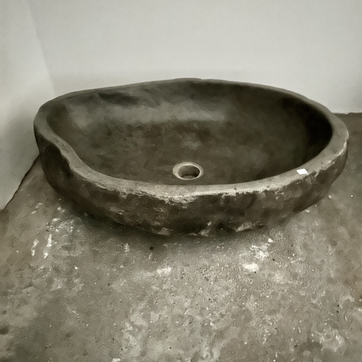 MATERIALE: Flodsten fra Bali – 100% naturprodukt. Indvendigt er vasken imprægneret med en tynd voksbelægning for beskyttelse mod kalk og snavs. FARVE: Grålig yderside – mørk inderside Stenen er skabt og præget af Moder Natur, hvilket giver Naturfarvet sten i grålige nuancer med en anelse brunlige og lyse aftegninger. Udvendig er stenen mat. Indvendigt har slibning samt pudsning med et tyndt lag voks givet vasken en mørk transit grå farve med en anelse blank finish. OPRINDELSE: Håndskåret på Bali, Indonesien. Stenen er et stykke af Moder Natur, som manuelt er blevet udhulet, slebet, pudset samt afslutningsvist imprægneret til den smukkeste håndvask med en glat, vandafvisende overflade på indersiden. Da stenen er manuelt udskåret er indersiden ikke 100% jævnt udhulet, hvilket er en del af den autentiske charme. VEDLIGEHOLDELSE: