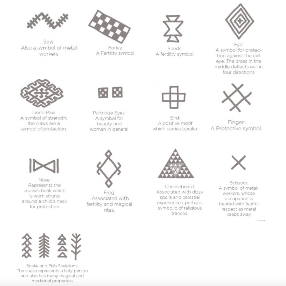 Tæpperne er vævet med en bundfarve i brune nuancer med indvævede spirituelle ikoner og symboler i forskellige chakra farver til at fremme beskyttelse og god energi til hjemmet. Hvert tæppe er unikt skabt af den kvindelige væver. Ikke 2 er ens!