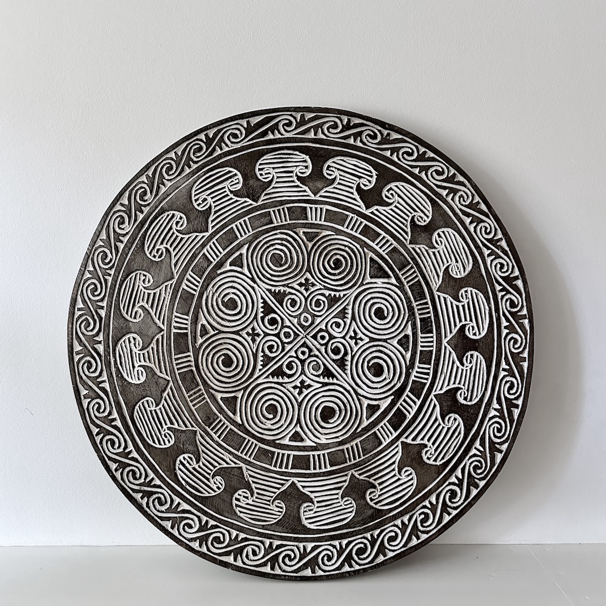 TIMOR stammen kommer fra den indonesiske ø af samme navn og er historisk kendt for deres meget smukke, rituelle håndværk i træ, som de har udøvet igennem århundreder. Et stort antal af øens oprindelige huse har bl.a. indgangsdøre i træ, der som bordet her er snittet ud med mønstre og symboler, som den lokale befolkning mener beskytter og giver god energi til husets beboere.