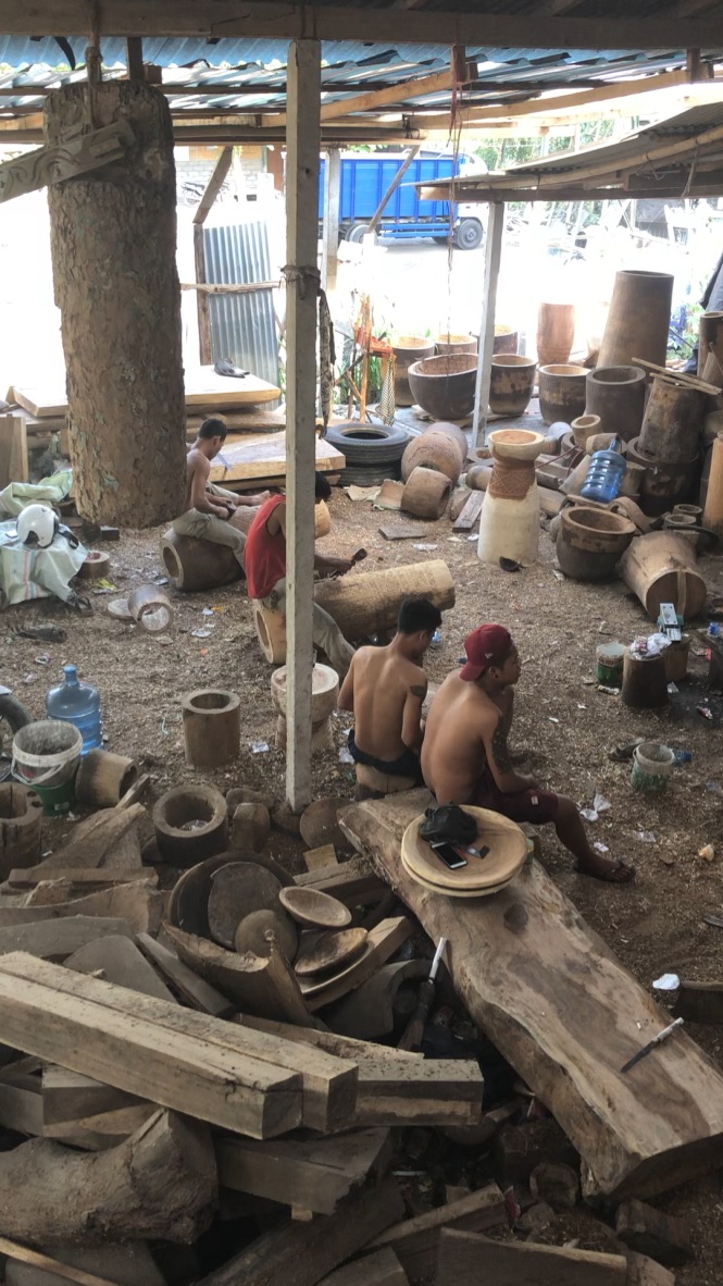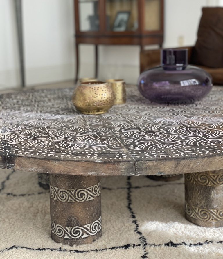Min familie og jeg fandt bordene i en helt fantastisk workshop på Bali, hvor en gruppe unge mænd crafter de smukke borde og mønstre i deres ‘baglokale’ som i virkeligheden er et stort, udendørs område bag den lille shop. Det sirlige håndværk er udført i hånden af et par unge mænd, der er opvokset på TIMOR øen, og som nu bor og arbejder på Bali.