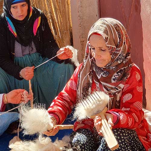• Zanafi stammerne har igennem århundrede håndvævet og håndknyttet smukke rustikke tæpper i fåreuld. Tæpperne er oftest vævet i en kombination af 2 farver samt med det typiske geometriske oZanafi zig-zag mønster samt horisontale rækker, der afspejler væverens fortolkning af Atlasbjergenes landekab. På nogle tæpper ser man desuden andre aftegn af symboler og tegn fra Zanafi stammens omkringliggende natur og kultur